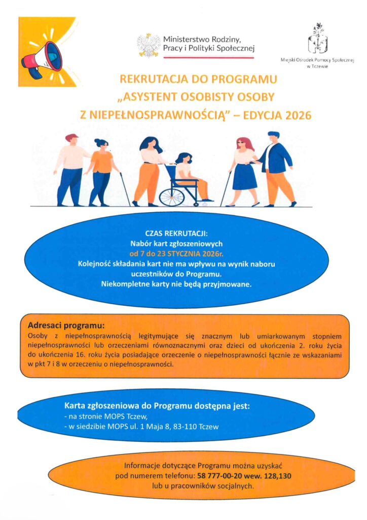 „Asystent osobisty osoby z niepełnosprawnością – edycja 2026” dla osób zamieszkujących na terenie miasta Tczew.