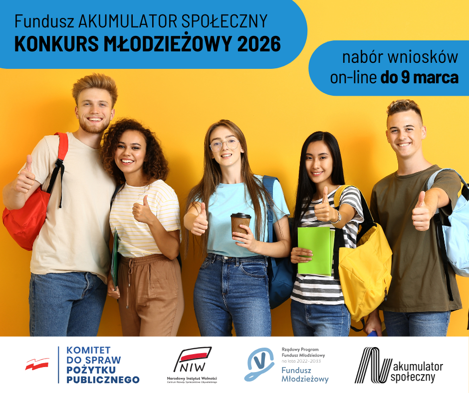 Szczegóły, w tym Regulamin konkursu młodzieżowego znajdują się na stronie Funduszu: www.akumulatorspoleczny.pl. Bieżące informacje są także na profilu FB: facebook.com/akumulatorspoleczny i IG: instagram.com/fundusz_akumulator_spoleczny/.