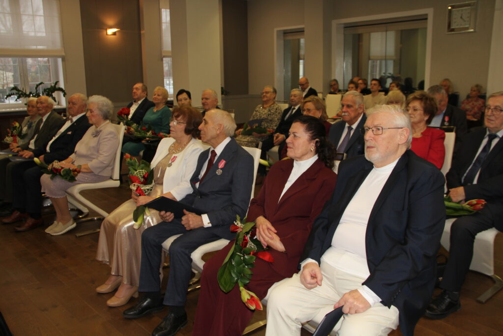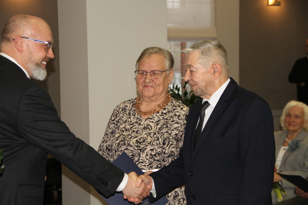 Z seniorami spotkał się prezydent Łukasz Brządkowski. Jubilatom towarzyszyli przyjaciele i rodziny. Seniorzy świętujący złote gody otrzymali medal od Prezydenta RP – za długoletnie pożycie małżeńskie, a od prezydenta Tczewa – gratulacje, kwiaty i upominek. – Jestem pełen podziwu dla tak znamienitych jubileuszy. Serdecznie wszystkim Państwu gratuluję i życzę dużo zdrowia oraz kolejnych jubileuszy – powiedział prezydent Tczewa.